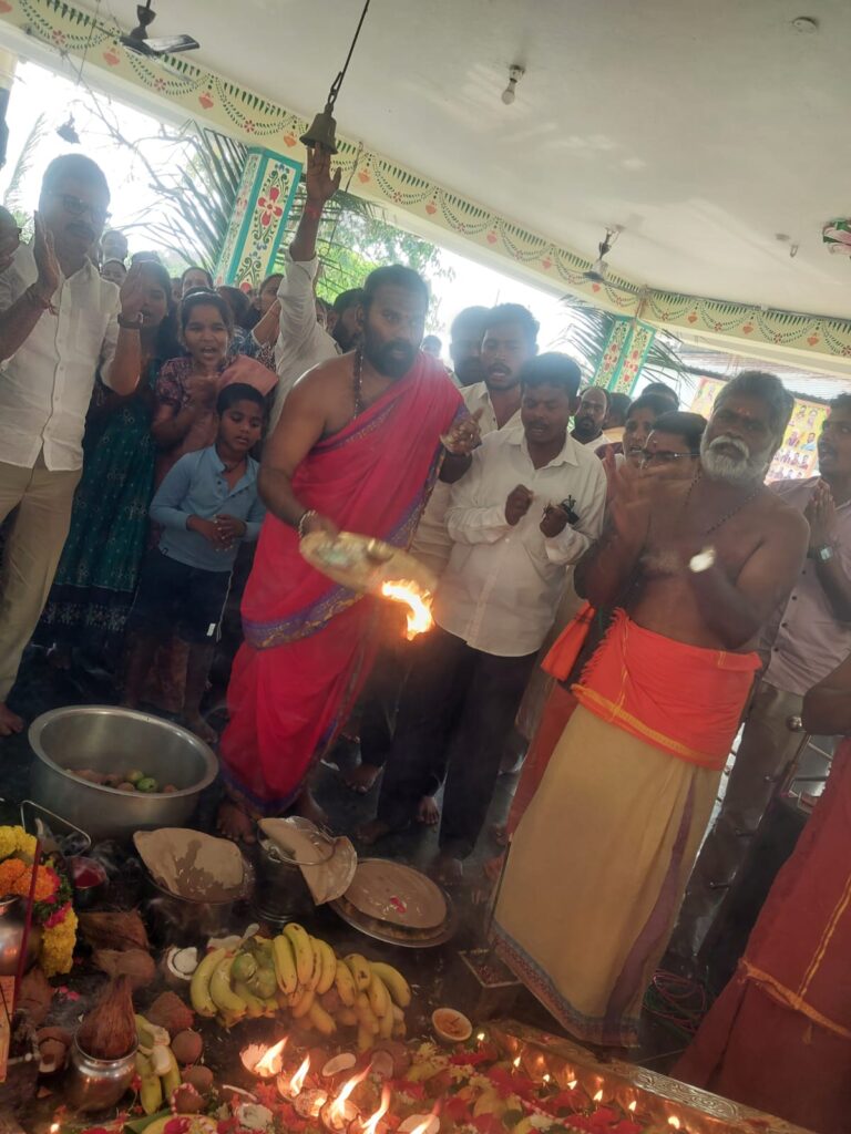 (తెలుగు ప్రభ): శ్రీ శ్రీ ధర్మశాస్త్ర అయ్యప్ప స్వామి జయంతిని బుధవారం ఉదయం పట్టణంలోని హౌసింగ్ బోర్డ్ కాలనీలో వెలసిన శ్రీ అయ్యప్ప స్వామి దేవాలయంలో భక్తిశ్రద్ధలతో భక్తుల భజనల మధ్య ఘనంగా జరిగింది. ఆలయ అభివృద్ధి కమిటీ అధ్యక్షులు సుందర్ గురుస్వామి ఆధ్వర్యంలో ఆలయ ప్రధాన పూజారి గవ్వమఠం విజయ శాస్త్రి శాస్త్రోక్తంగా అయ్యప్ప స్వామి పూజలు నిర్వహించారు. పట్టణానికి చెందిన అయ్యప్ప స్వామి భక్తులు నిర్వహించిన భజనల కీర్తనల మధ్య అత్యంత వైభవంగా పడిపూజోత్సవాన్ని నిర్వహించారు. సందర్భంగా పడిని గురుస్వాములు సుందర్ గురుస్వామి, తీగల శేఖర్ గురుస్వామి, జగన్ గురు స్వామి తదితరులు వెలిగించగా భక్తులు తిలకించారు. ఇంకా ఈ పూజా కార్యక్రమంలో గురు స్వాములు అనిల్ గురుస్వామి, మురళి గురు స్వామి, శేఖర్ గురుస్వామి, ప్రవీణ్ గురు స్వామి, సురేష్ గురు స్వామి తదితరులు పాల్గొన్నారు. అనంతరం భక్తులకు ఆలయ ప్రధాన పూజారి గవ్వమఠం విజయ శాస్త్రి ఆశీర్వచనాలు అందజేసి స్వామివారి తీర్థ ప్రసాదాలను అందించారు.