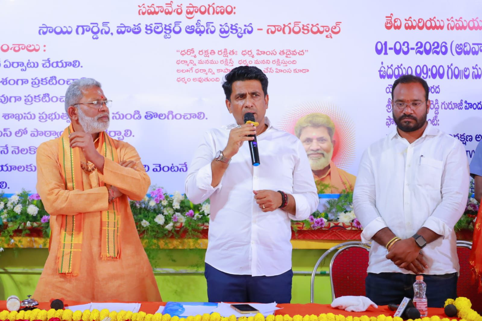 కార్యక్రమానికి ముఖ్య అతిథిగా హాజరైన ఎమ్మెల్యే మాట్లాడుతూ సమాజంలో నైతిక విలువలు, ఆచారాలు, సంప్రదాయాలను కాపాడుకోవడం అత్యంత అవసరమని తెలిపారు. ధర్మ పరిరక్షణ ద్వారా సమాజంలో ఐక్యత, శాంతి నెలకొంటాయని ఆయన అన్నారు. దేశ సుభిక్షతకు సాంస్కృతిక మూలాలు బలంగా ఉండాలని పేర్కొన్నారు. యువత ధార్మిక చైతన్య కార్యక్రమాల్లో చురుకుగా పాల్గొని సమాజ నిర్మాణంలో భాగస్వాములు కావాలని ఆయన పిలుపునిచ్చారు.: ధార్మిక చైతన్యానికి యువత ముందుకు రావాలి