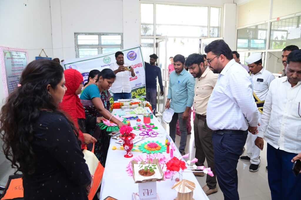 ఈ సందర్భంగా మెప్మా మహిళా సంఘాల ఆధ్వర్యంలో వ్యర్థ పదార్థాలను వినియోగించి తయారు చేసిన వివిధ రకాల ఆకర్షణీయమైన వస్తువులతో ఏర్పాటు చేసిన స్టాల్ను కలెక్టర్ పరిశీలించారు. మహిళలు తయారు చేసిన హస్తకళా ఉత్పత్తులు, అలంకరణ వస్తువులు మరియు గృహ వినియోగ వస్తువులను కలెక్టర్కు వివరించారు.