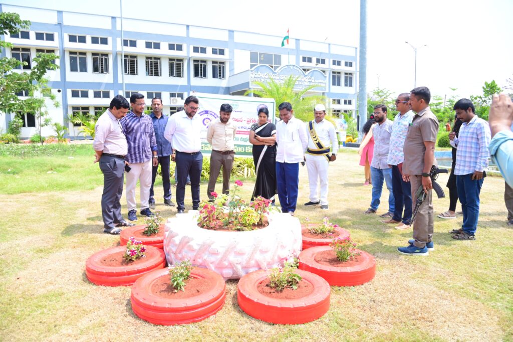 ప్రత్యేకంగా పాత టైర్లను వినియోగించి తయారు చేసిన పూల కుండీలు కలెక్టర్ను ఆకట్టుకున్నాయి. రంగురంగులుగా అలంకరించి రూపొందించిన ఈ కుండీలు ఇంటి పరిసరాలను అందంగా తీర్చిదిద్దడమే కాకుండా పర్యావరణ పరిరక్షణకు కూడా తోడ్పడుతున్నాయని కలెక్టర్ పేర్కొన్నారు. వ్యర్థ పదార్థాలను పునర్వినియోగం చేయడం ద్వారా పర్యావరణాన్ని కాపాడటంతో పాటు మహిళలకు అదనపు ఆదాయం వచ్చే అవకాశాలు కూడా పెరుగుతాయని తెలిపారు.